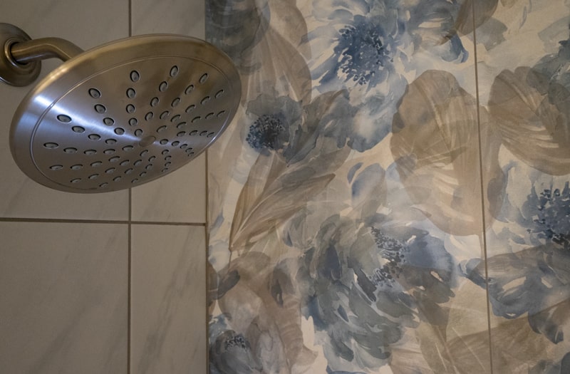 Particular attention was given to the first-floor powder room to not disturb the existing tile laid by the owner’s father many years ago while still achieving an updated look with new countertops, fixtures, flooring, and paint.