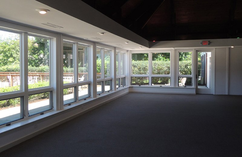 Moon Lake Village Club House in Hoffman Estates, Illinois was built in the early 1960s. Modern for its time with tall ceilings and an open air room; it had seen better days and was in need of structural support repair. Scholl Construction was hired to repair the structural damage of time and renovate the facility. Beams were repaired, windows replaced, with new flooring installed throughout.